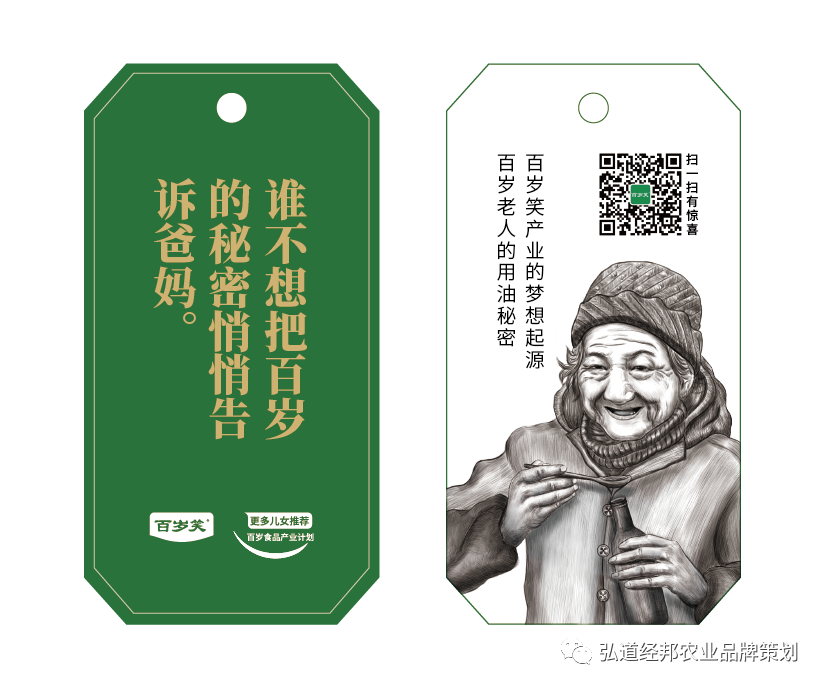 這個(gè)測(cè)試驗(yàn)證了我們的想法,就是百歲笑這個(gè)品牌最大的資產(chǎn)在名字上,就是“百歲”二字。所以百歲笑的品牌賣的不應(yīng)該是“油”,而賣的應(yīng)該是“百歲”!