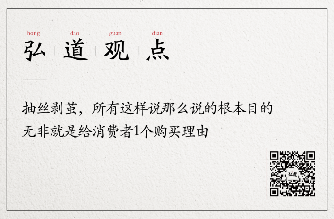 后面我們發(fā)現(xiàn),通過(guò)消費(fèi)心智與文化母體,打造的一句話(huà)作為消費(fèi)者的購(gòu)買(mǎi)理由,解決了“弘本”品牌近80%層面的事情。