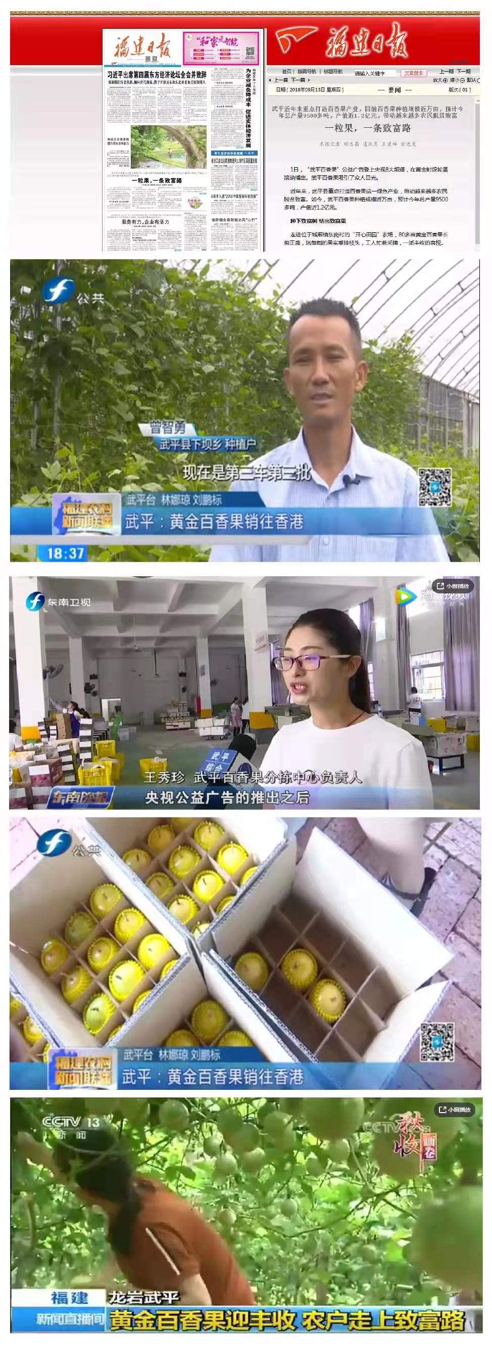 于此同時(shí),武平百香果外部的聲音也是如雷貫耳,《閩西日?qǐng)?bào)》、《福建日?qǐng)?bào)》、《香港商報(bào)》、《海峽導(dǎo)報(bào)》、央視7套每日農(nóng)經(jīng)、龍巖電視臺(tái)、武平電視臺(tái)等進(jìn)行全方位的報(bào)道。