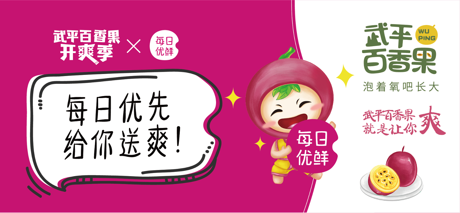 我們以百香果的果形為核心識(shí)別圖案,目的是增強(qiáng)品類(lèi)感知,不斷強(qiáng)化“百香果=武平百香果”,