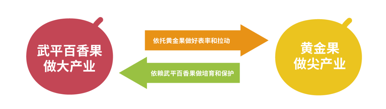 2016年,以曾智勇為代表的一批新農(nóng)人,率先從外地引進(jìn)黃金果品種開(kāi)始小范圍試種,2017年武平縣將百香果產(chǎn)業(yè)作為縣里的致富振興產(chǎn)業(yè)重點(diǎn)培育,并喊出打造“中國(guó)黃金果之鄉(xiāng)”的目標(biāo);時(shí)值福建省正全力打造“福果”品牌,武平百香果因獨(dú)有天然氧吧優(yōu)勢(shì)種出來(lái)的百香果口感度非常好,武平百香果被納入“福果”及其“福建百香果”品牌矩陣中。同年“金磚峰會(huì)”在廈門(mén)召開(kāi),武平百香果被選入金磚會(huì)晤宴請(qǐng)食材名列,這一事件在后來(lái)的弘道公司的品牌規(guī)劃中被放大成為武平百香果難得的品牌資產(chǎn)。